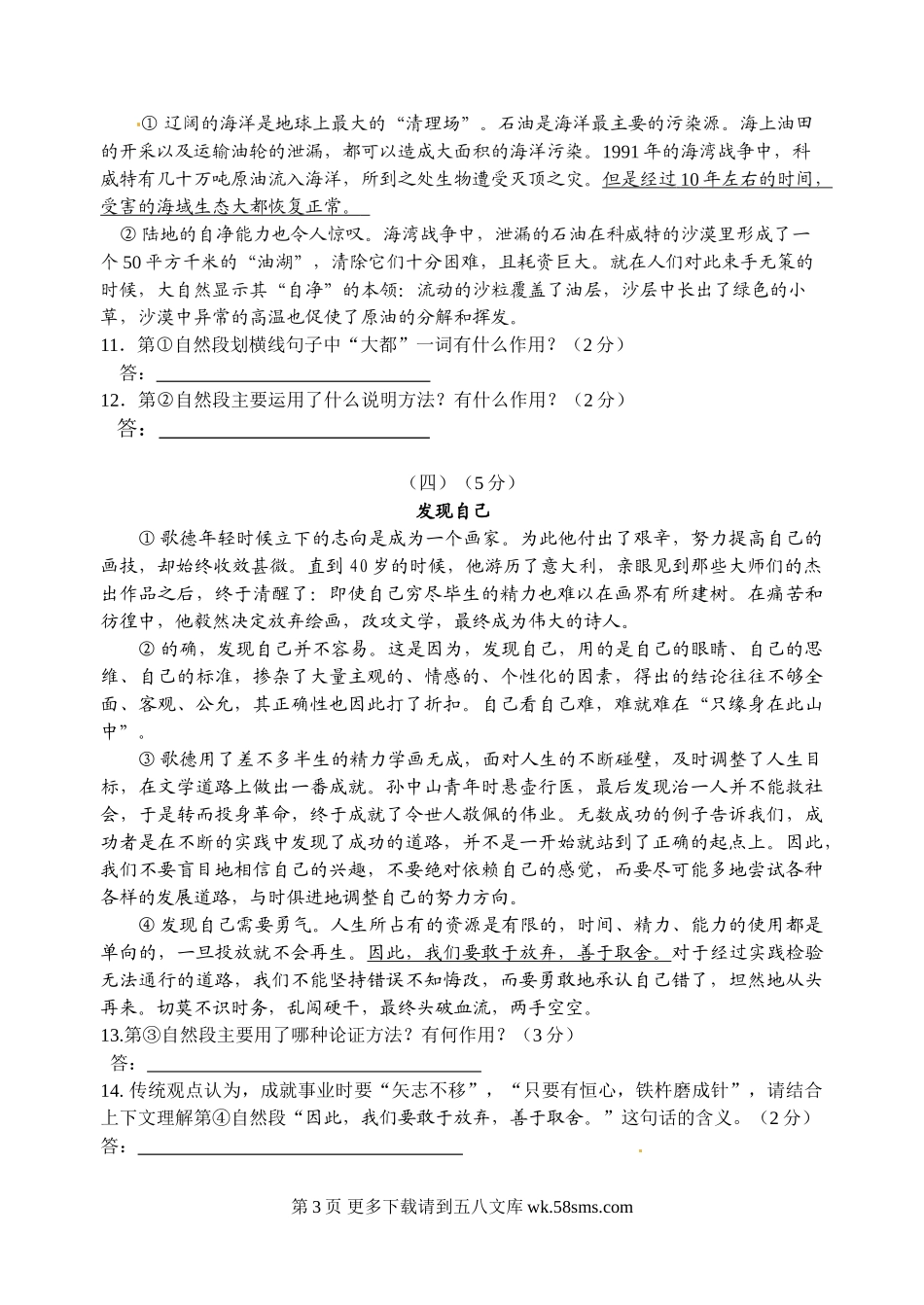无锡市惠山区初二语文第二学期期末试卷及答案.doc_第3页