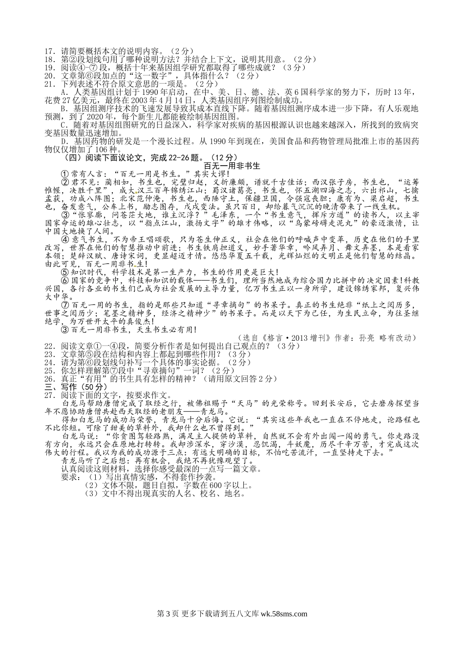 绝密★启用前内蒙古包头市2013年高中招生考试试题卷语文整理录入:青峰弦月一、积累与运用(23分)1.给下面加点汉字注音。(3分)酷肖鲜为人知锲而不舍2.选出下面词语中的错别字并改正。(3分)随声附合藩篱颔...