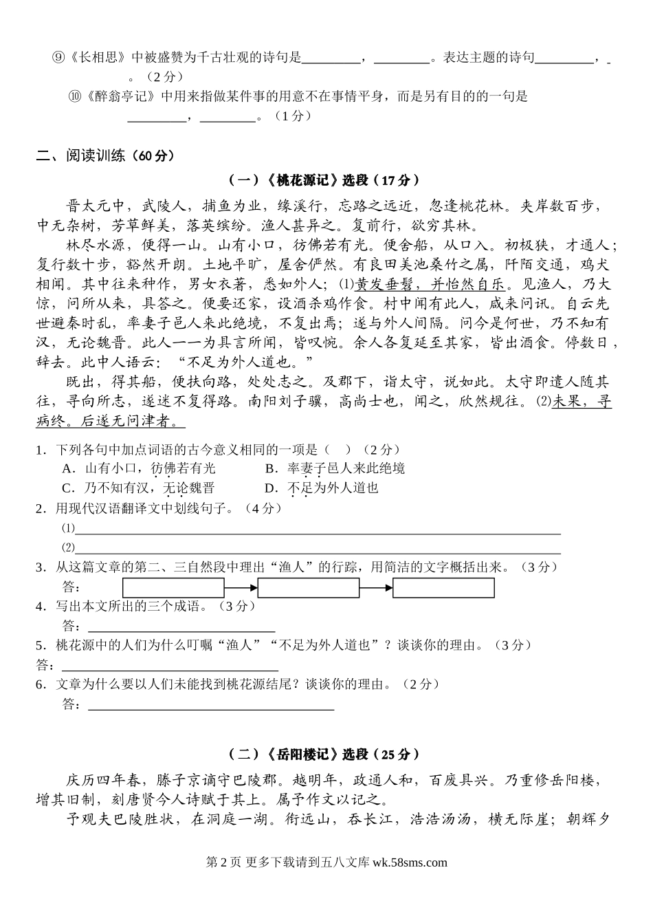 语文版八年级下册第七单元测试题及答案.doc_第2页
