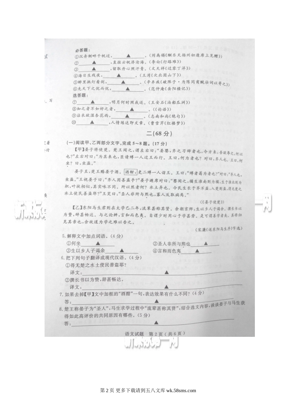 2014年淮安市中考语文试题.doc_第2页