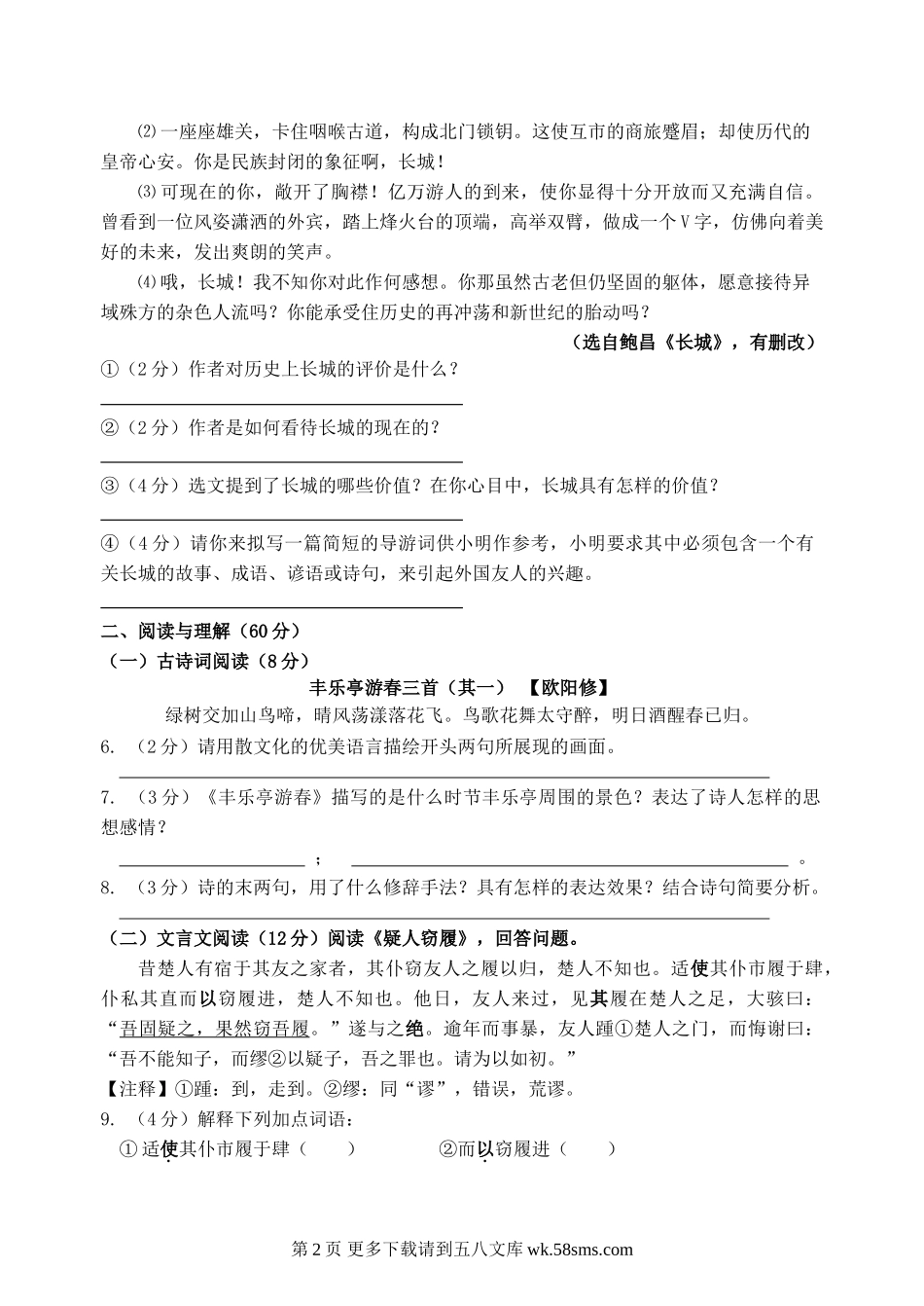 2012~2013年苏教版八年级语文期中考试试题及答案.doc_第2页