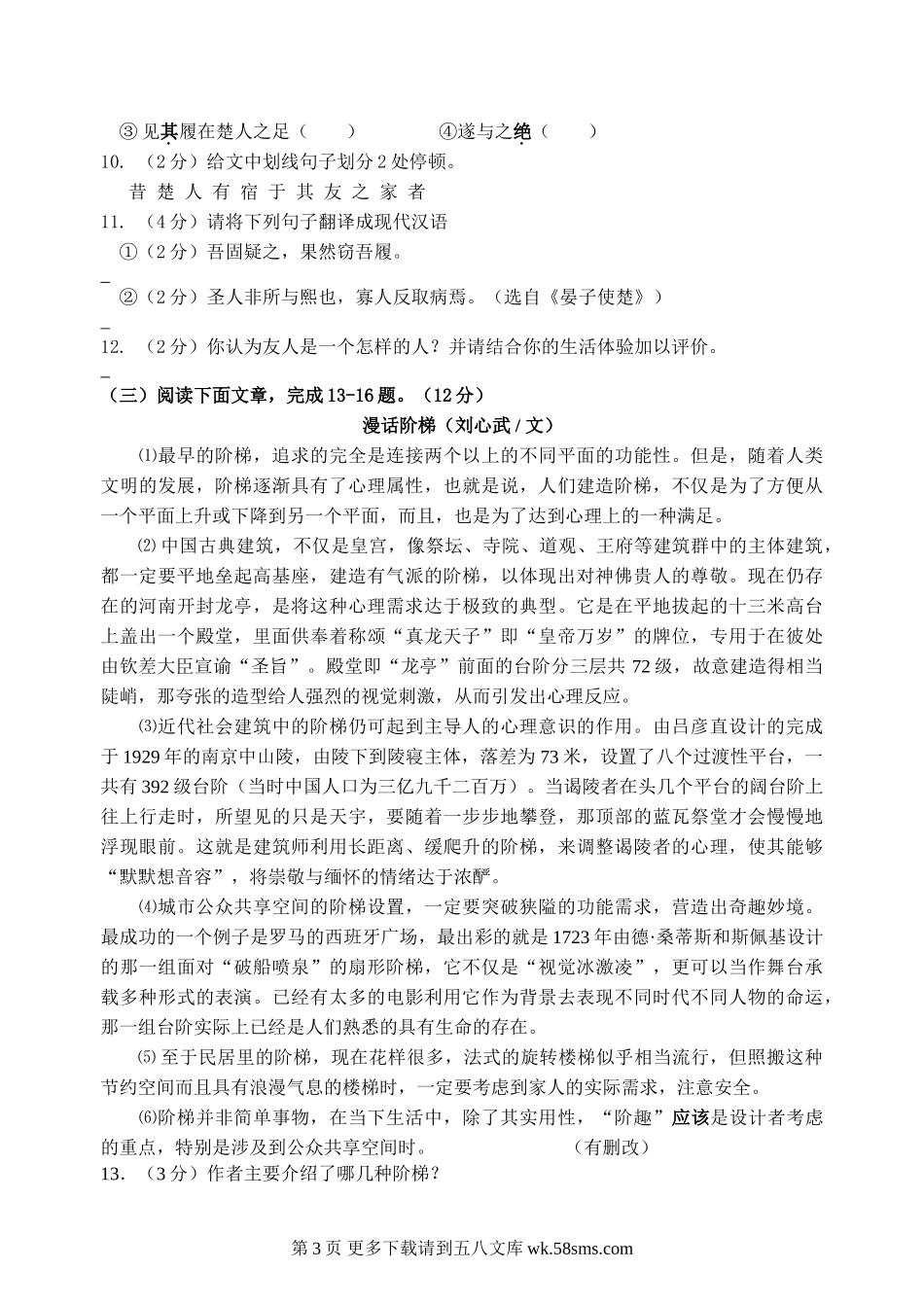 2012~2013年苏教版八年级语文期中考试试题及答案.doc_第3页