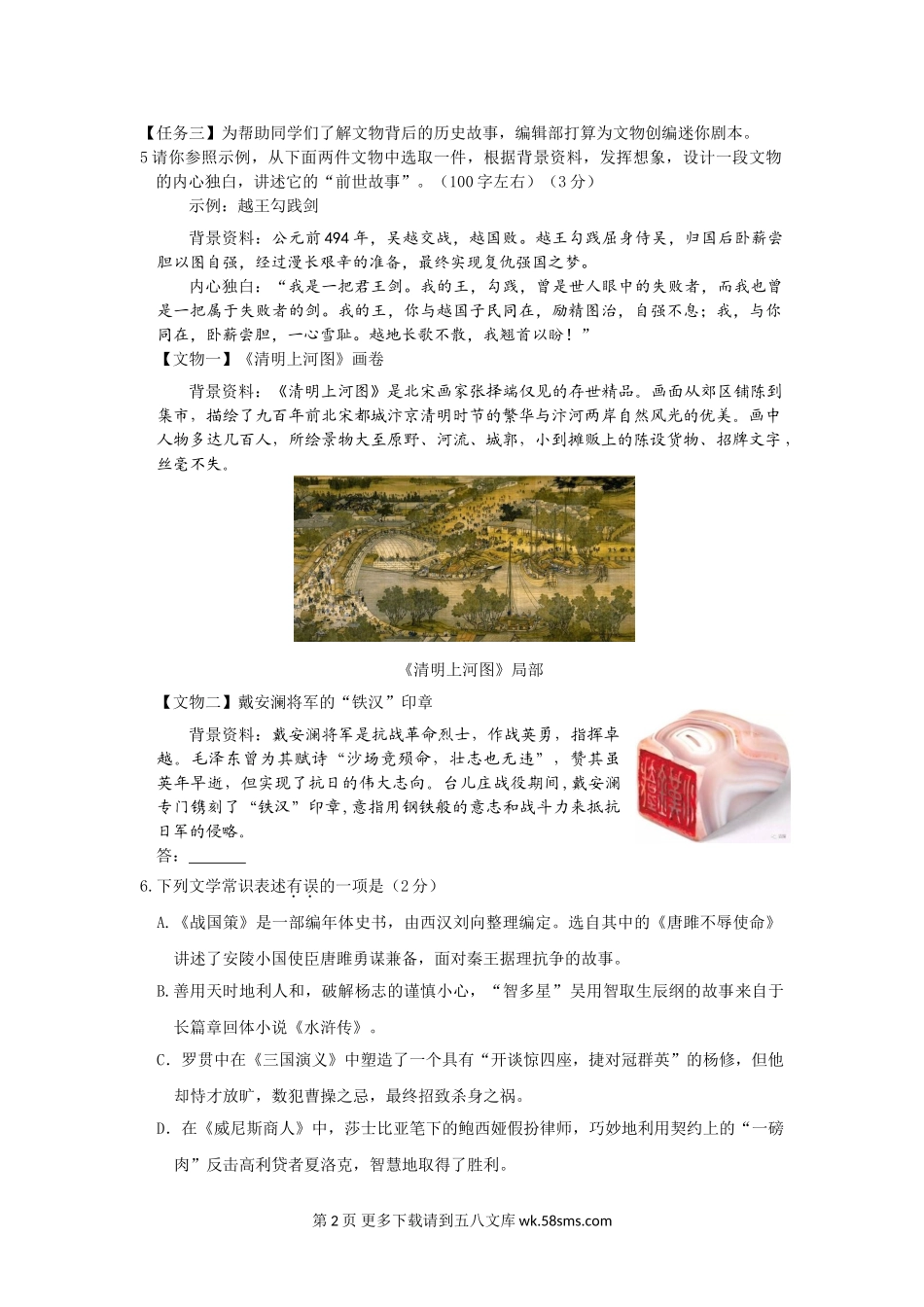 九年级语文1月朝阳区初三语文期末试卷.doc_第2页