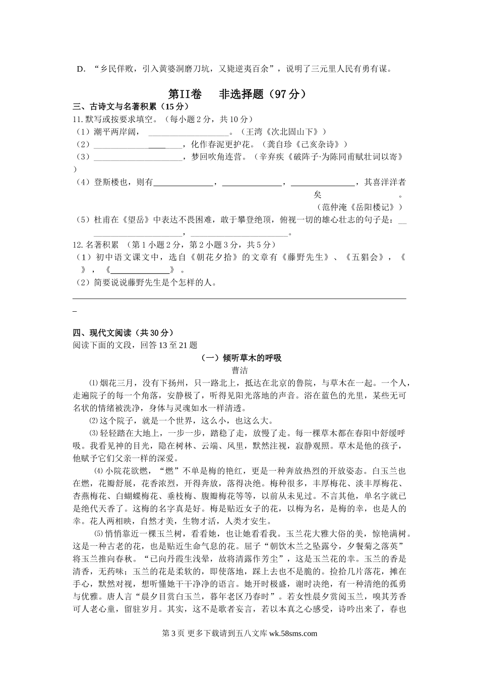 2015年佛山市中考语文试卷及答案.doc_第3页