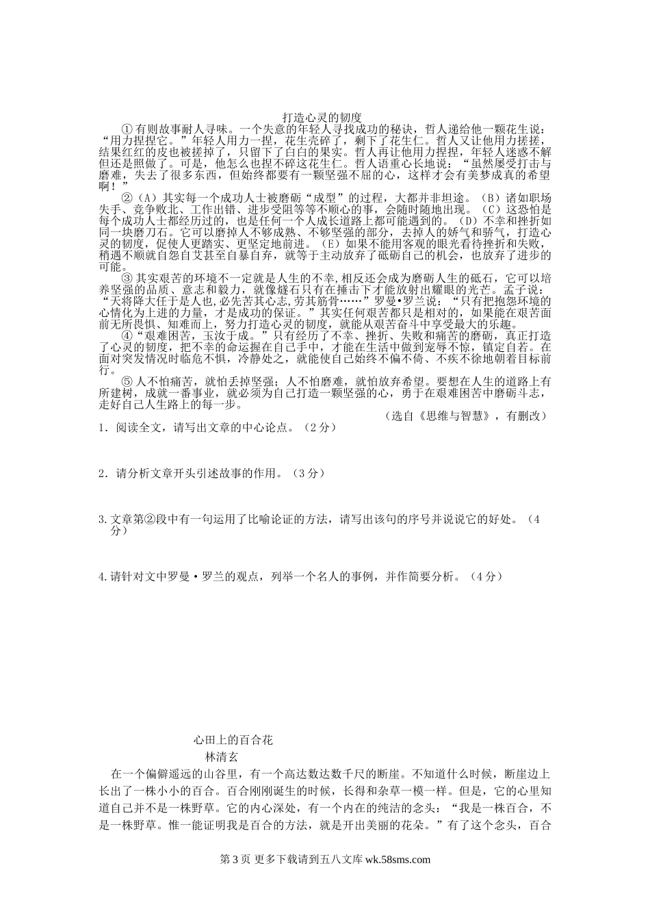 九年级语文上期末课外阅读复习题及答案.doc_第3页