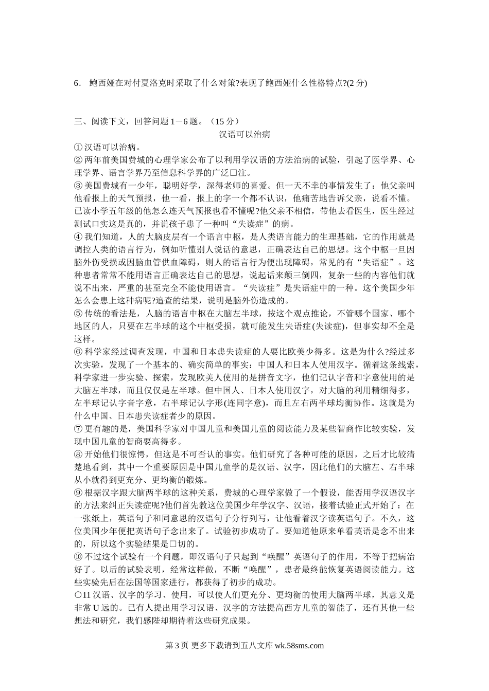 九年级语文下册第四单元测试题及答案.doc_第3页