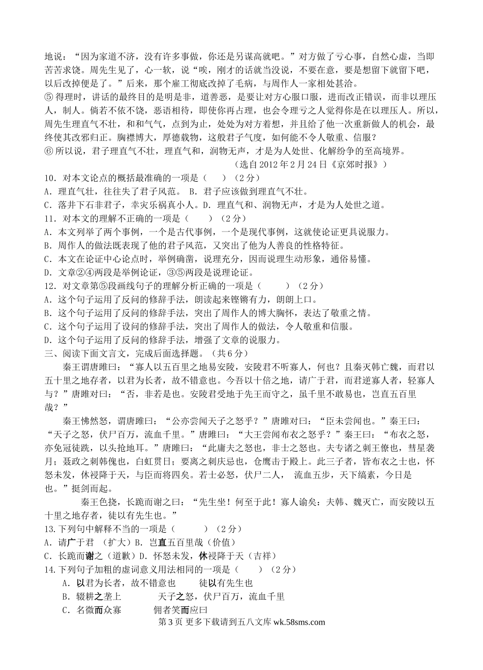 莒北八校2016--2017年九年级语文第一次月考试题及答案.doc_第3页