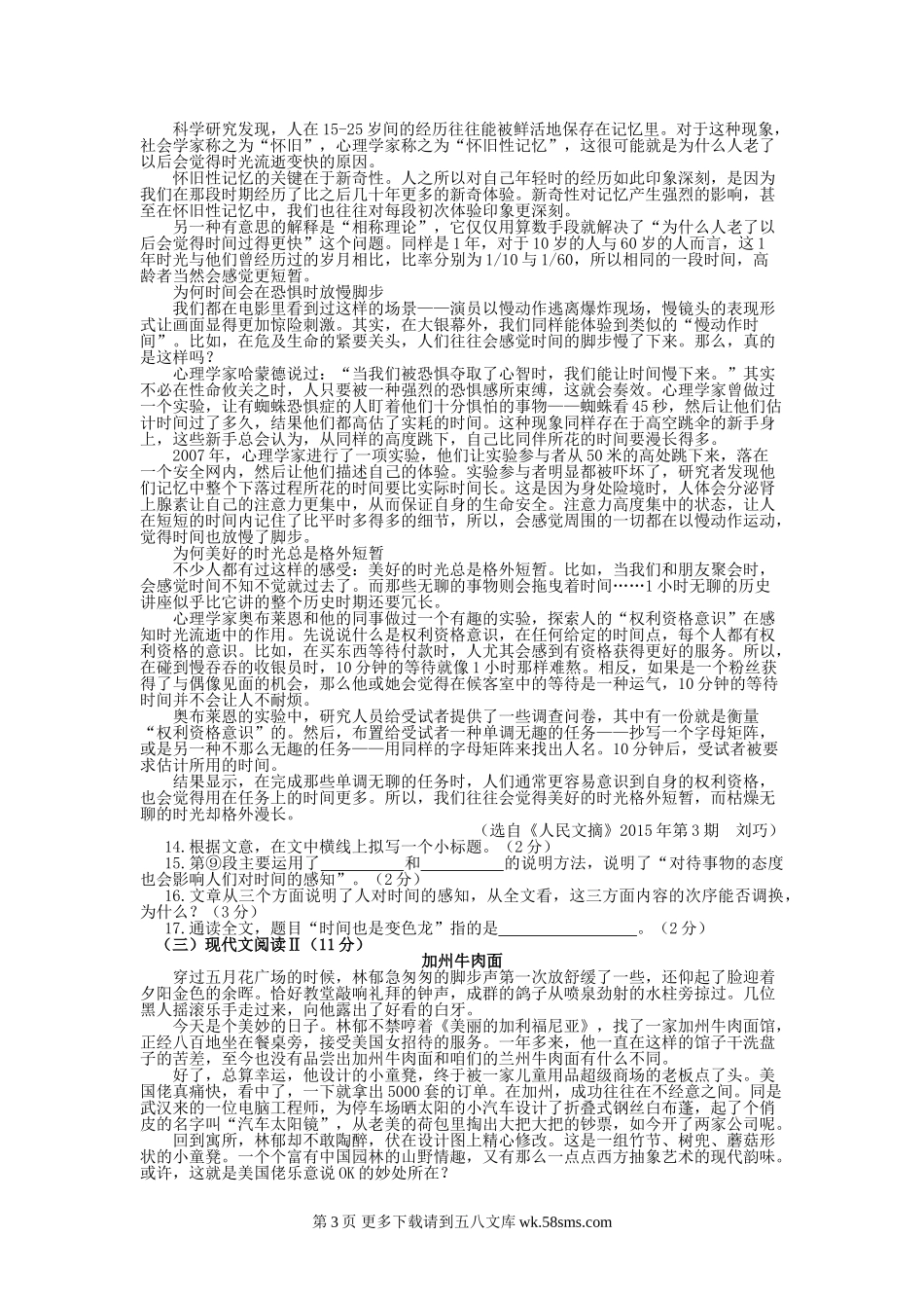 2015年烟台市初中学业水平考试语文试题一、书写与卷面(5分)1.书写。(3分)2.卷面。(2分)二、积累与运用(34分)3.下列各项中字音字形完全正确的一项是()(2分)A.娴(xián)熟玲珑剔(tì)透休憩险象迭...