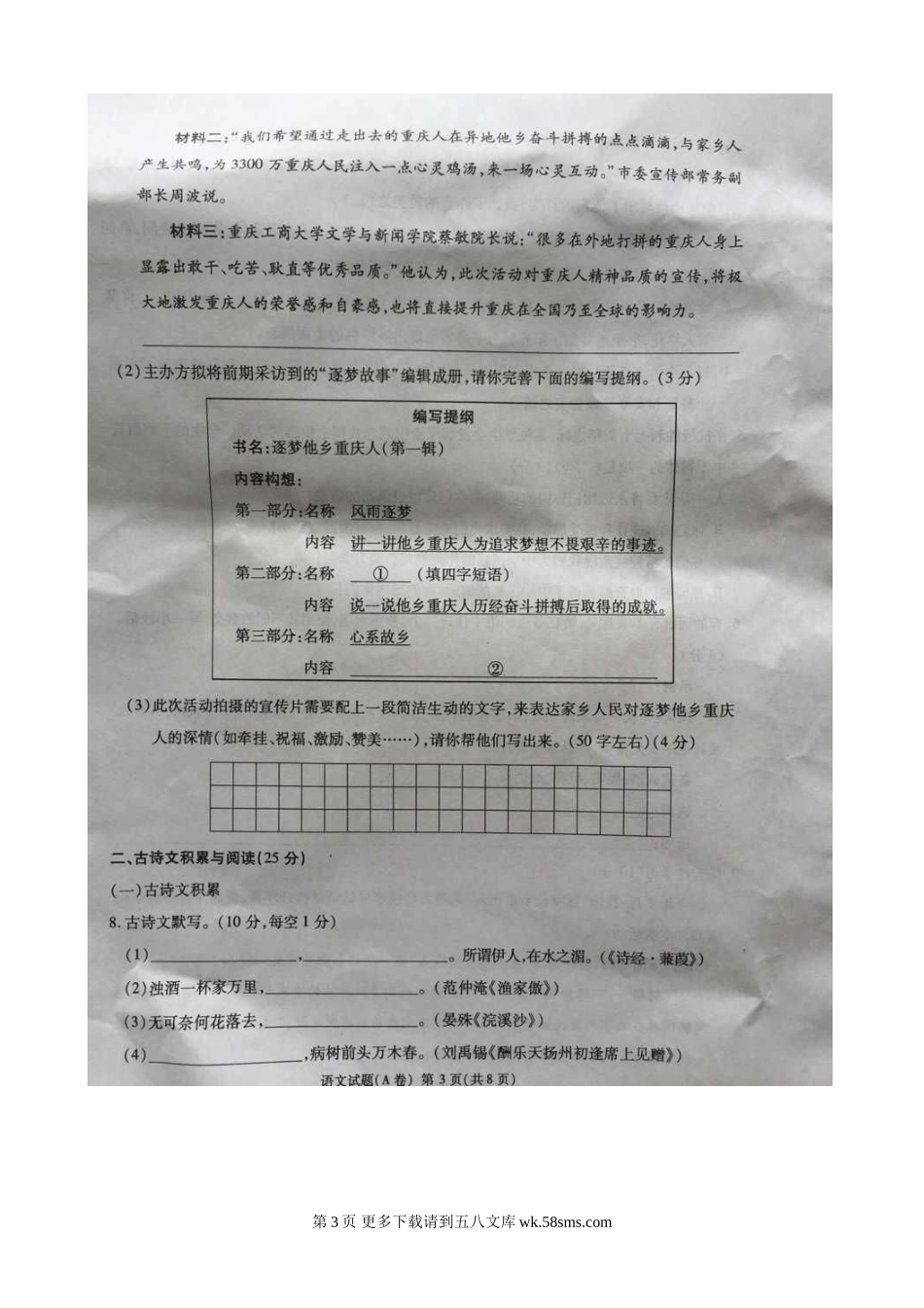 2015年重庆市中考语文试题及答案A卷.doc_第3页