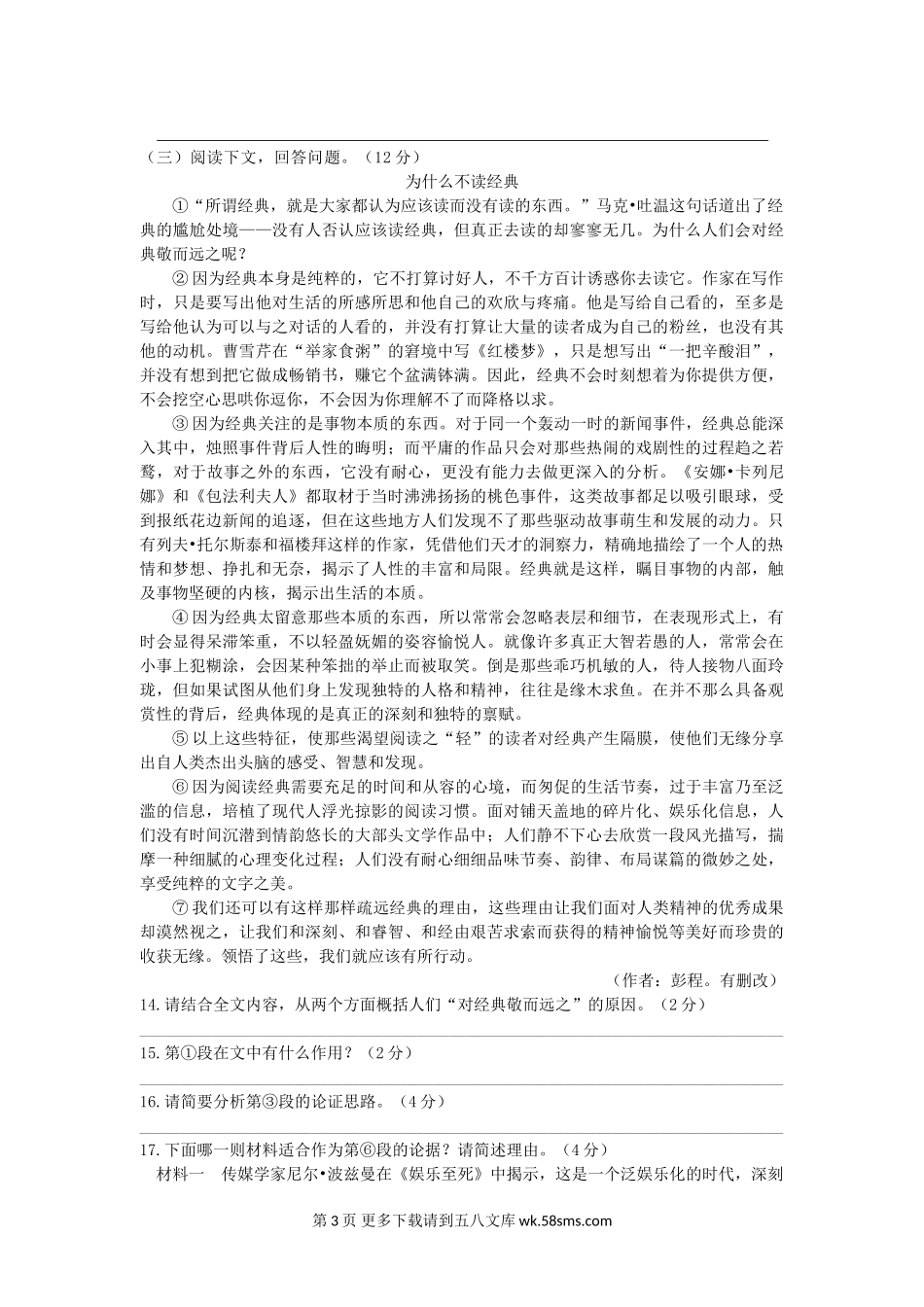 全解2015年九年级语文上第五单元测试题及答案解析.doc_第3页