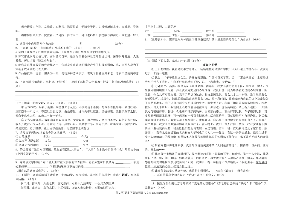 塘边中学九年级语文第二次月考试卷及答案.doc_第2页