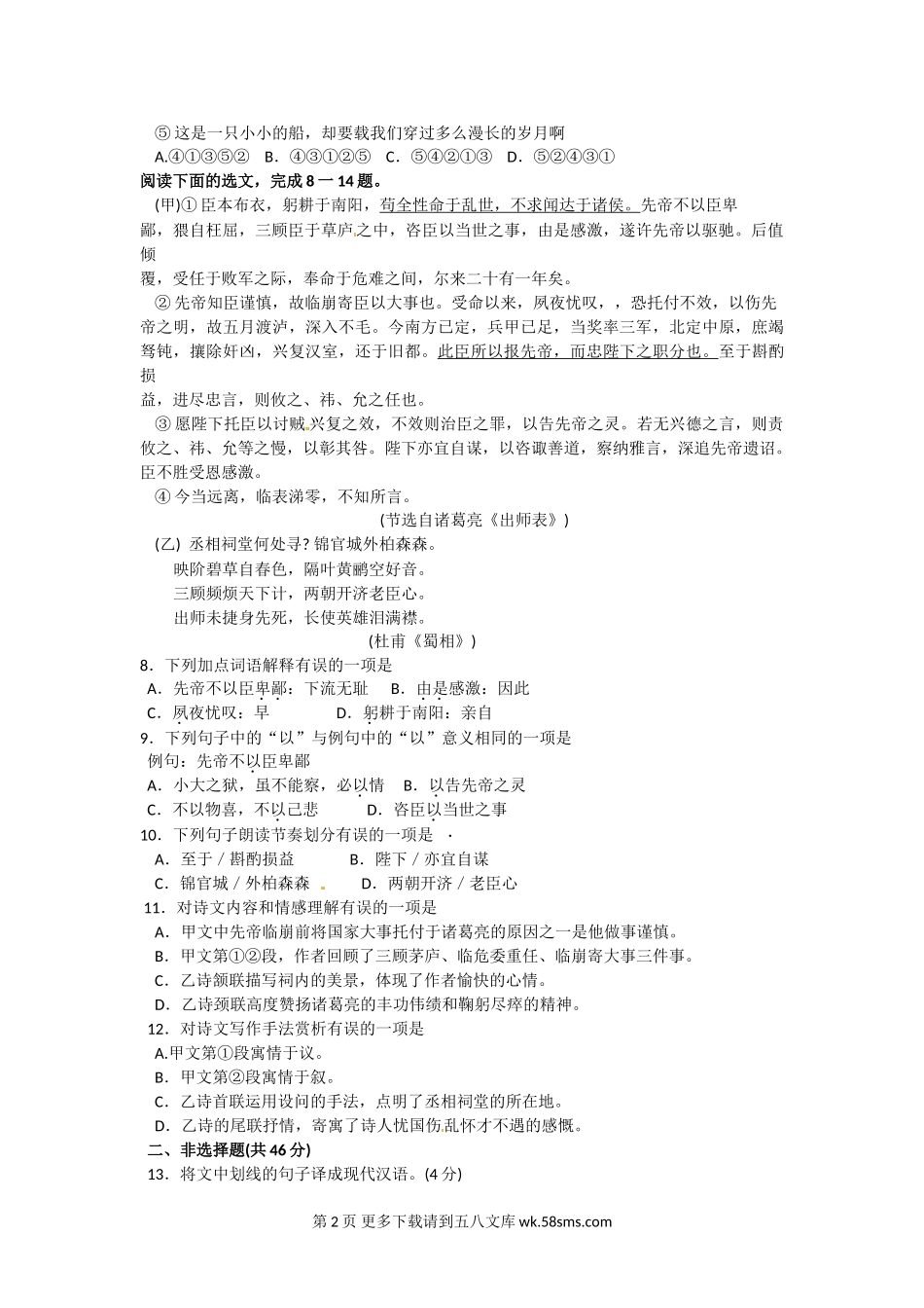 2016年邵阳市中考语文试卷.doc_第2页