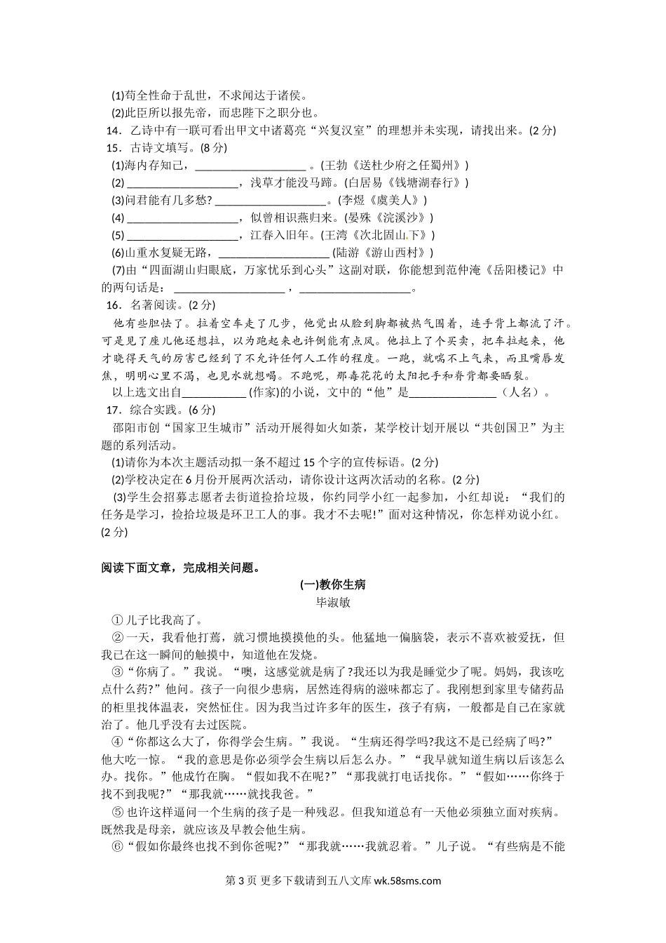 2016年邵阳市中考语文试卷.doc_第3页