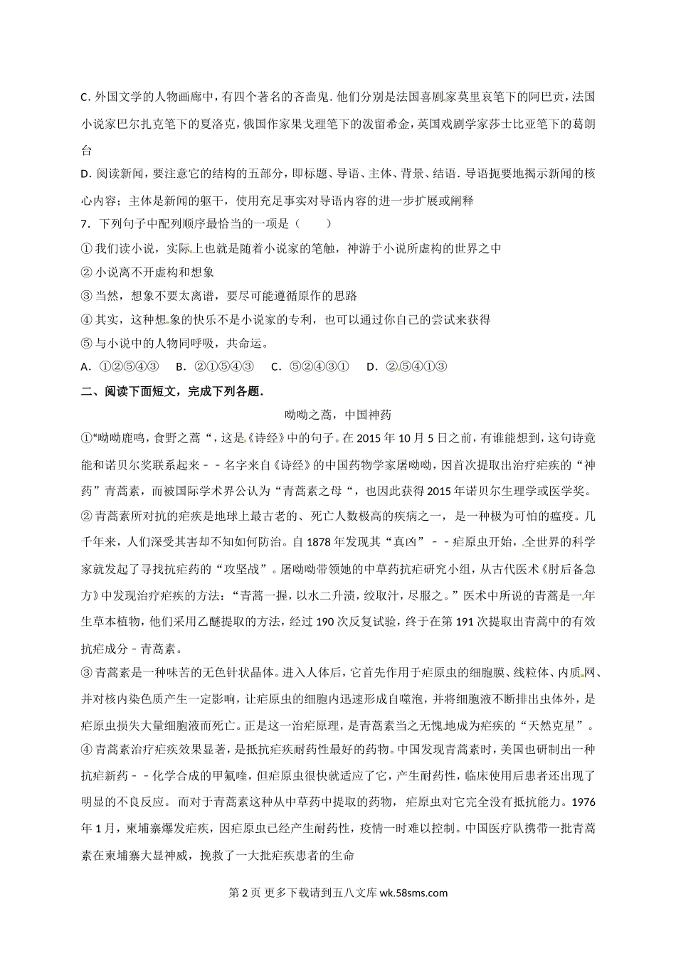 2017年广安市中考语文试卷及答案2.doc_第2页
