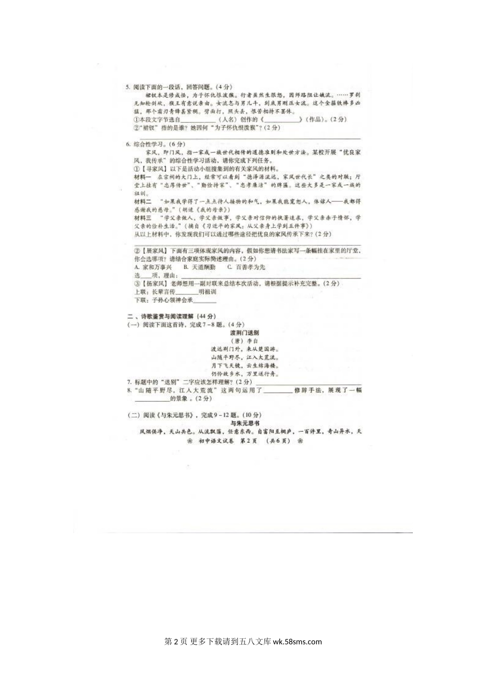 2017年衡阳市中考语文试卷及答案 (2).doc_第2页