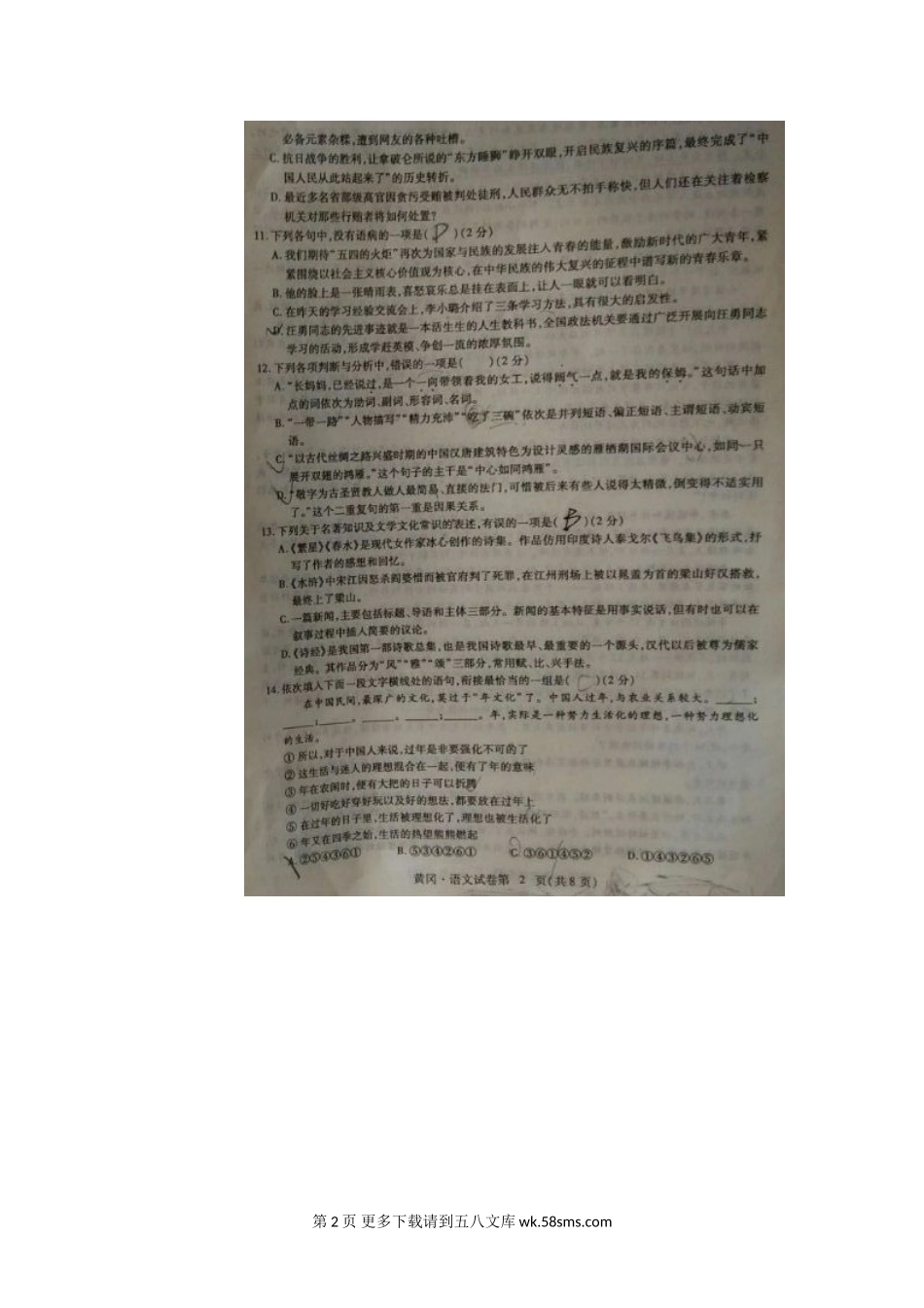 2017年黄冈市中考语文试卷.doc_第2页
