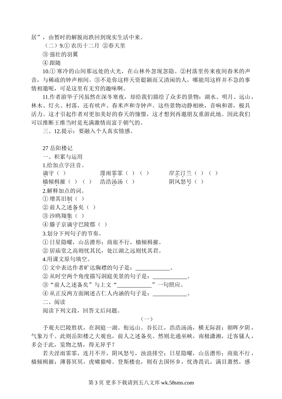 八年级语文下册第六单元练习题及答案.doc_第3页