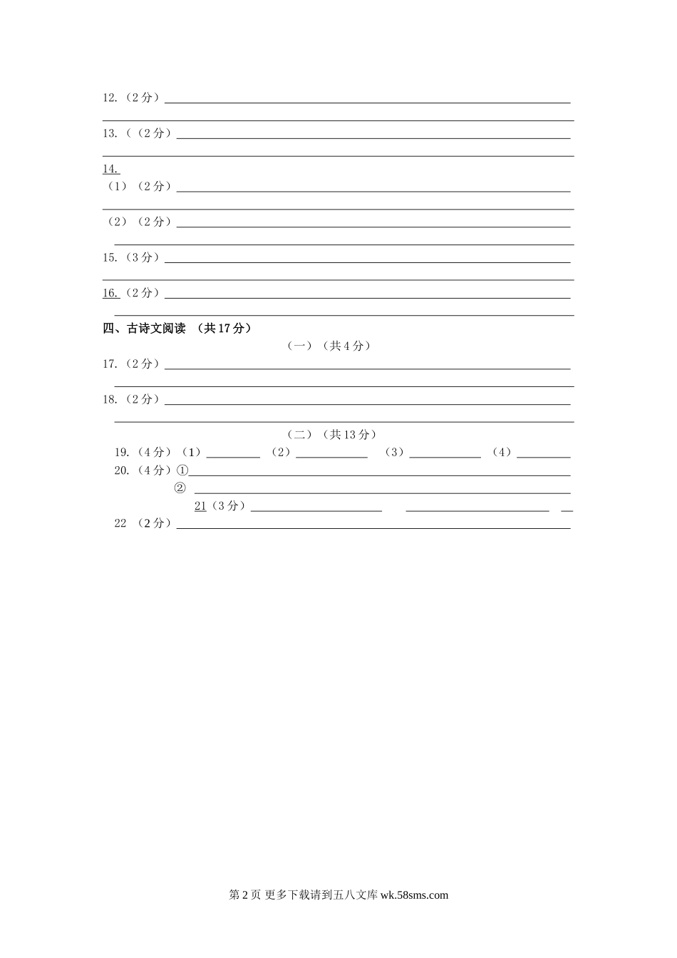 八年级语文下册第四单元试卷及答案含双项细目表.doc_第2页
