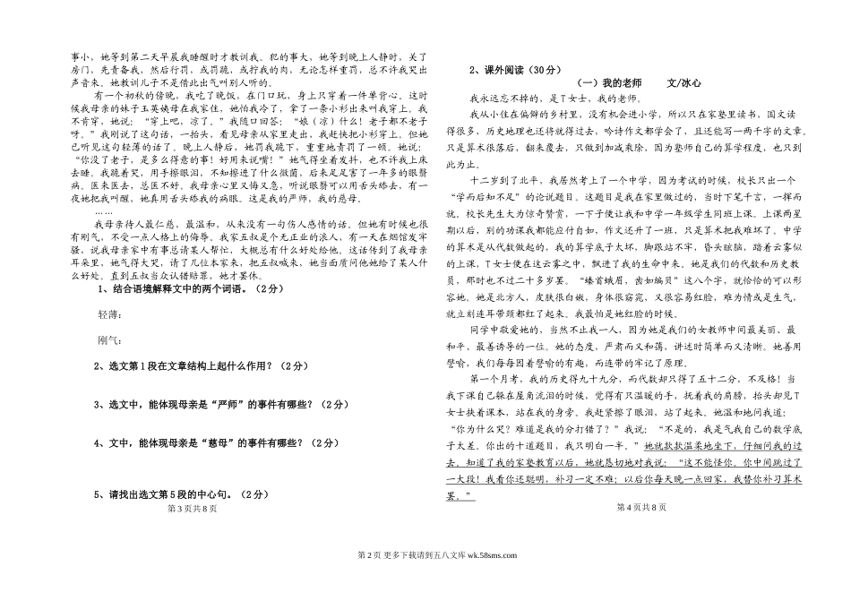 八年级语文下册第一单元测试题及答案.doc_第2页