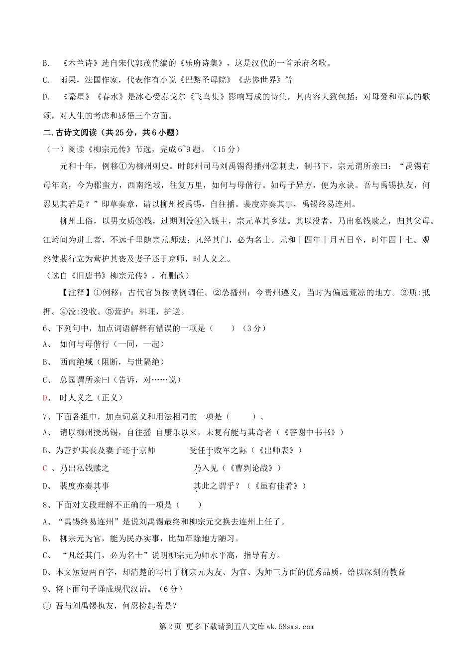 2017年咸宁市中考语文试卷及答案.doc_第2页