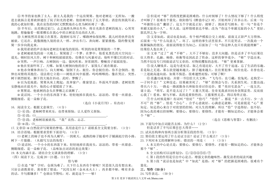2018年九年级中考语文模拟试卷及答案.doc_第3页