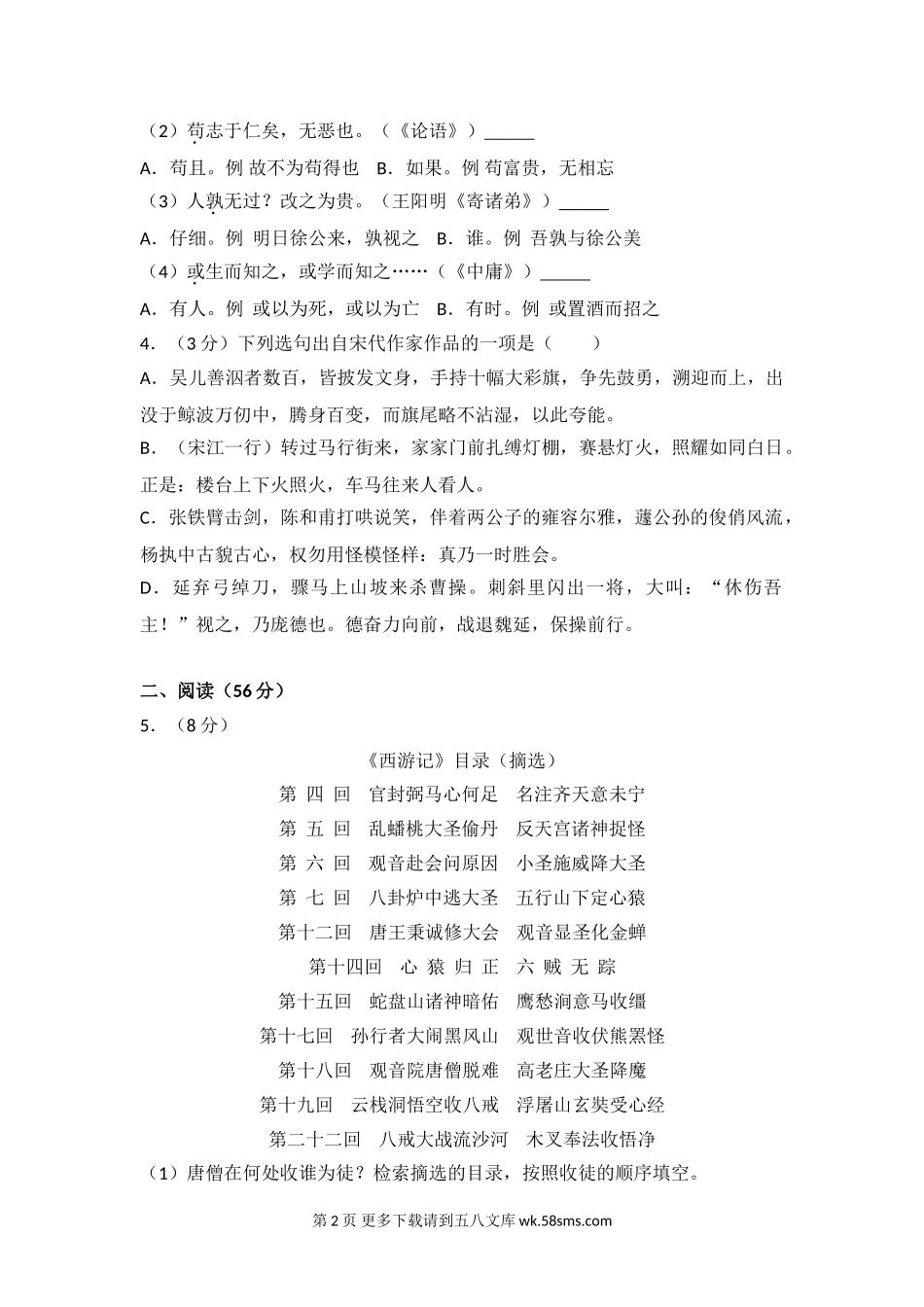 2018年宁波市中考语文试题及答案.doc_第2页