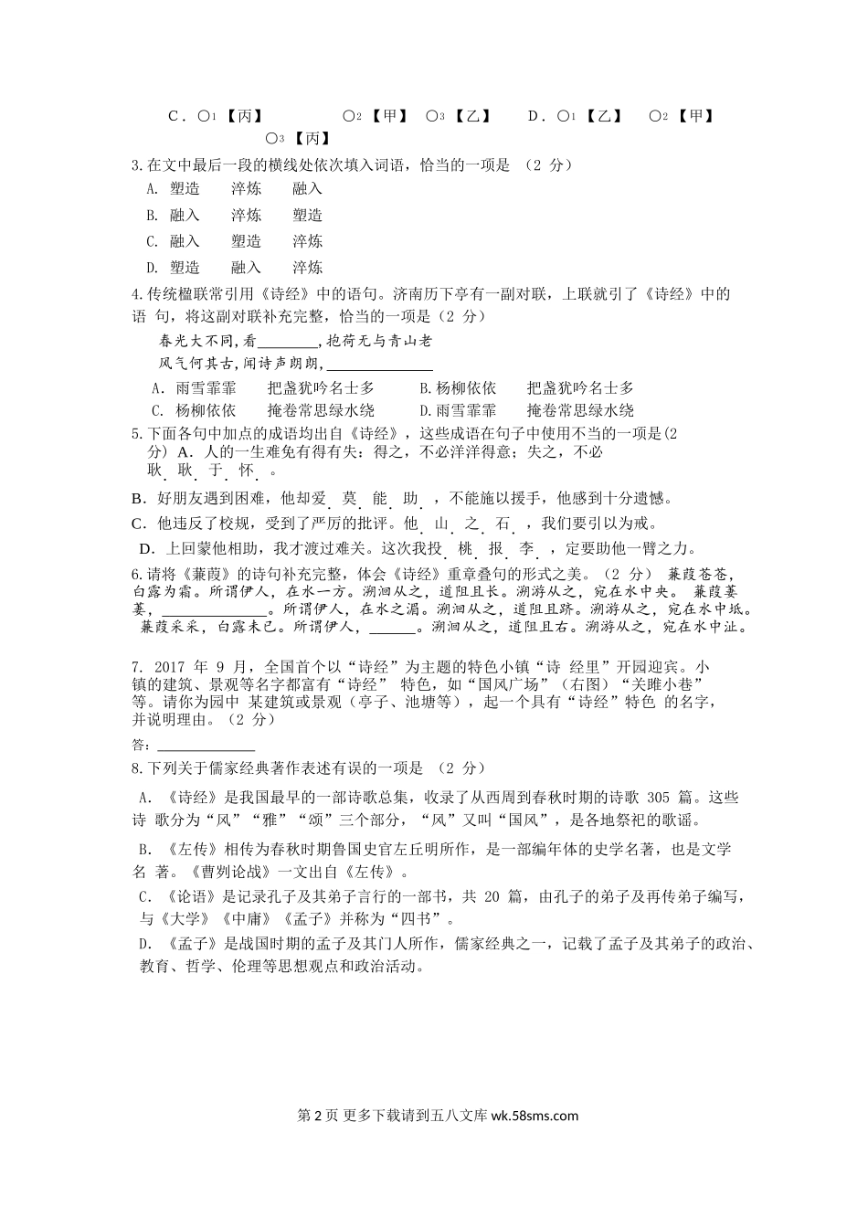 2018年西城区初三一模语文试卷及答案.doc_第2页