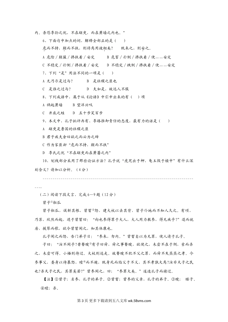 2010-2011年高一第二学期语文期末试卷及答案.doc_第3页