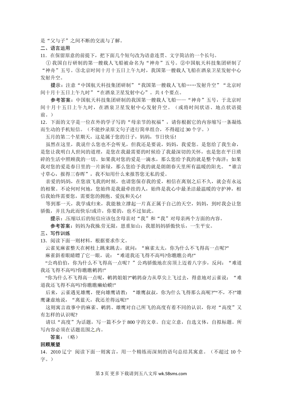 高一语文1.4十八岁和其他练习题及答案解析.doc_第3页