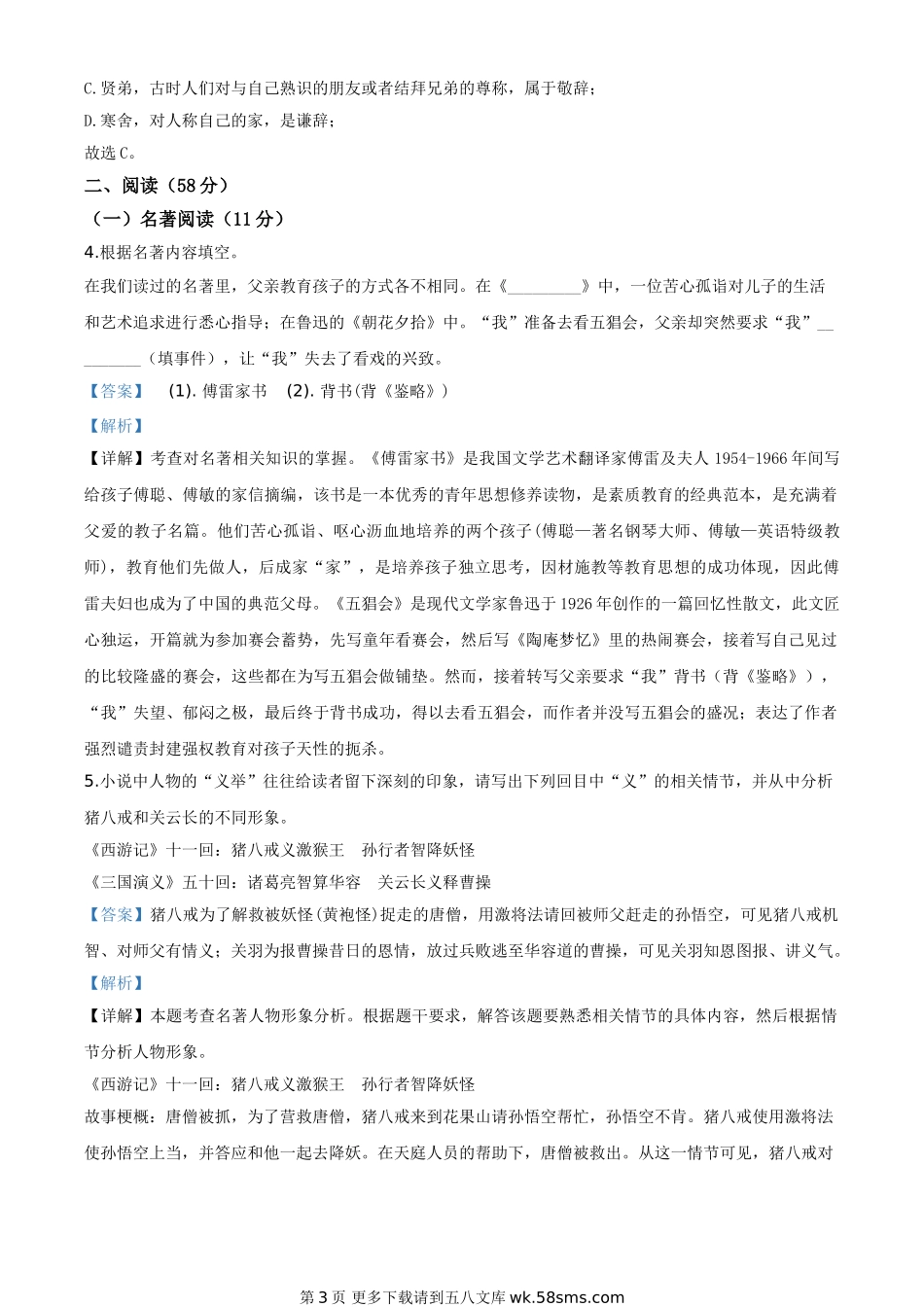 2020年中考真题精品解析 语文(浙江台州卷)精编word版.doc_第3页