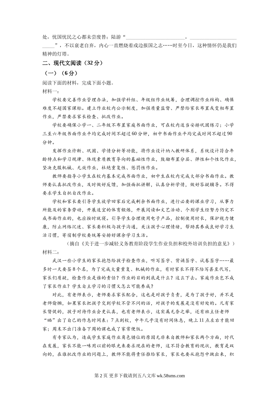 2022年湖南省常德市中考语文真题(原卷版).doc_第2页