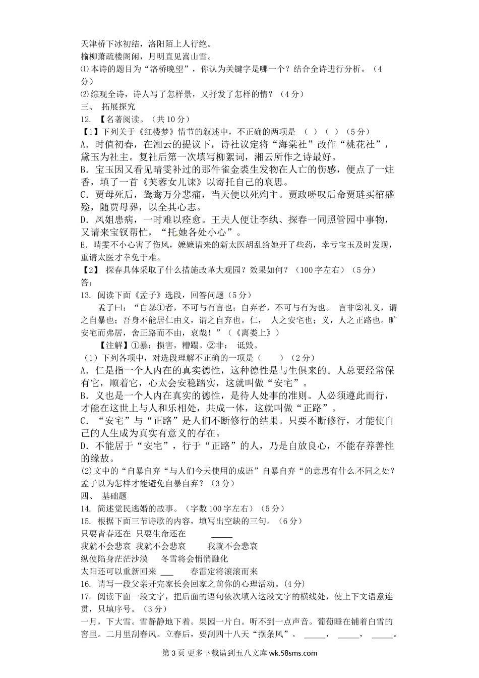 2015年高二语文12月份月考试题及答案.doc_第3页