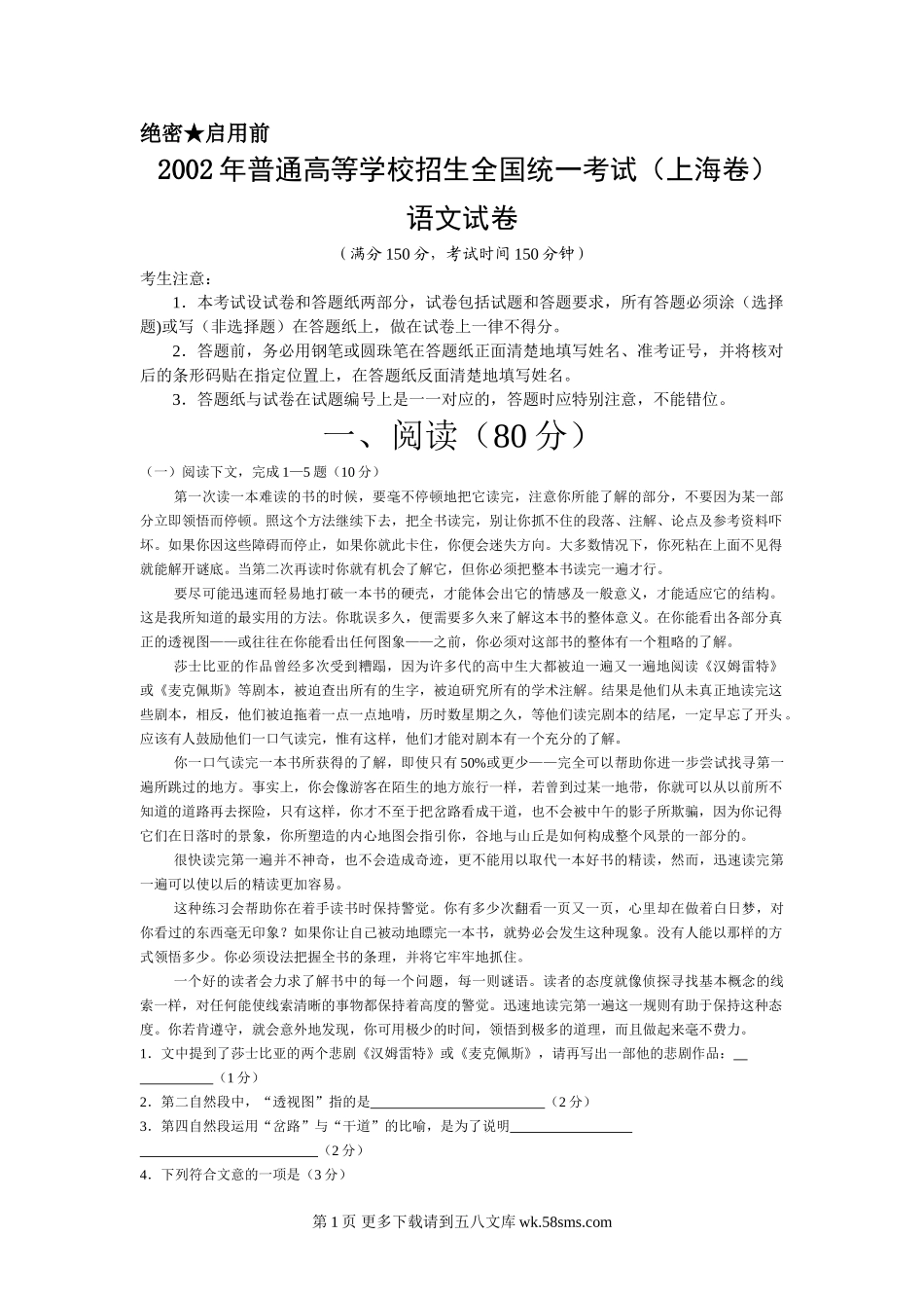 2002年上海高考语文真题试卷(word版).doc_第1页