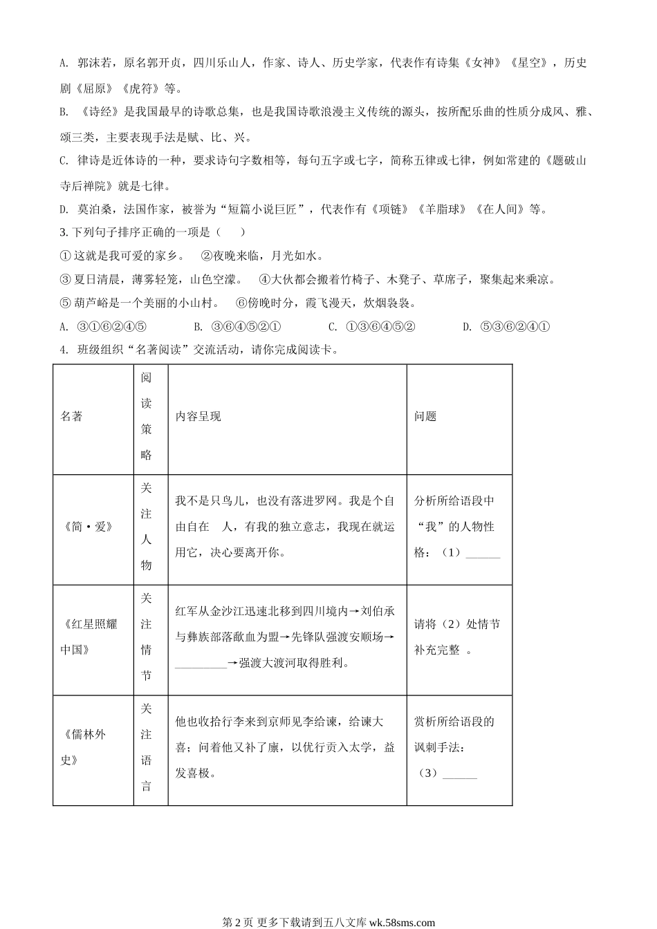 2022年内蒙古赤峰市中考语文真题(原卷版).doc_第2页