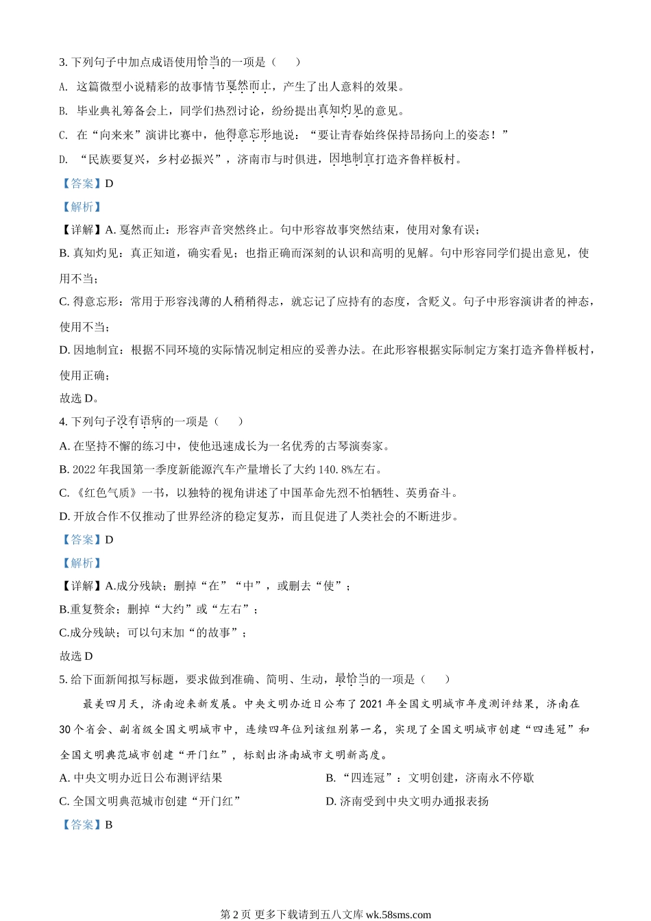 2022年山东省济南市中考语文真题(解析版).doc_第2页
