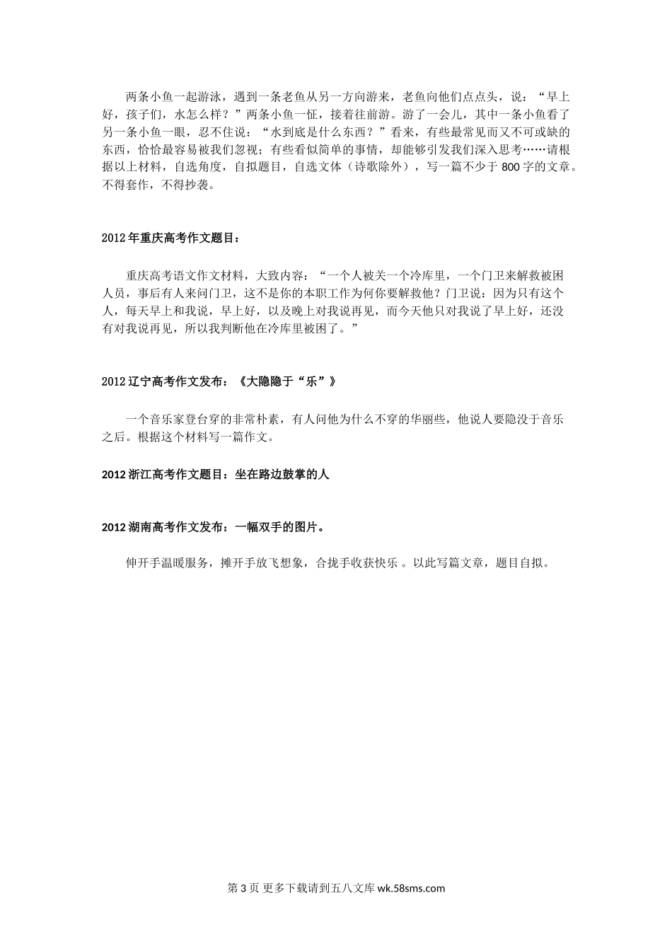 2012年高考作文题总览2012年全国卷高考作文题目:《放下顾虑》材料:儿子和妈一起下田干活,儿子穿很多,妈让脱掉一些衣物,儿子脱后感觉甚是轻松妈教导要放下负担不要顾虑太多2012全国卷新课标高考作文题目:船...