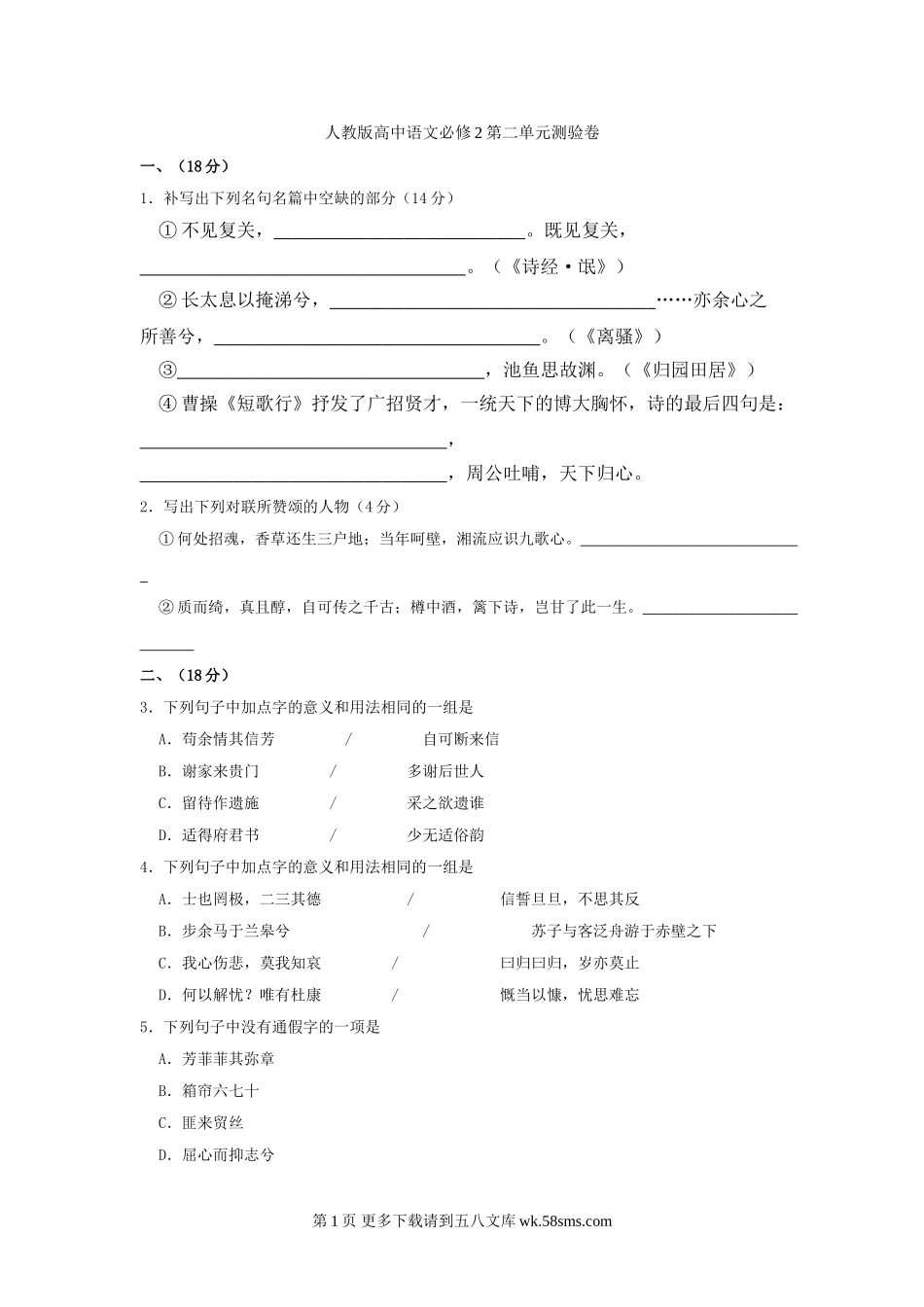 高二语文高中语文必修2第二单元试题.doc_第2页