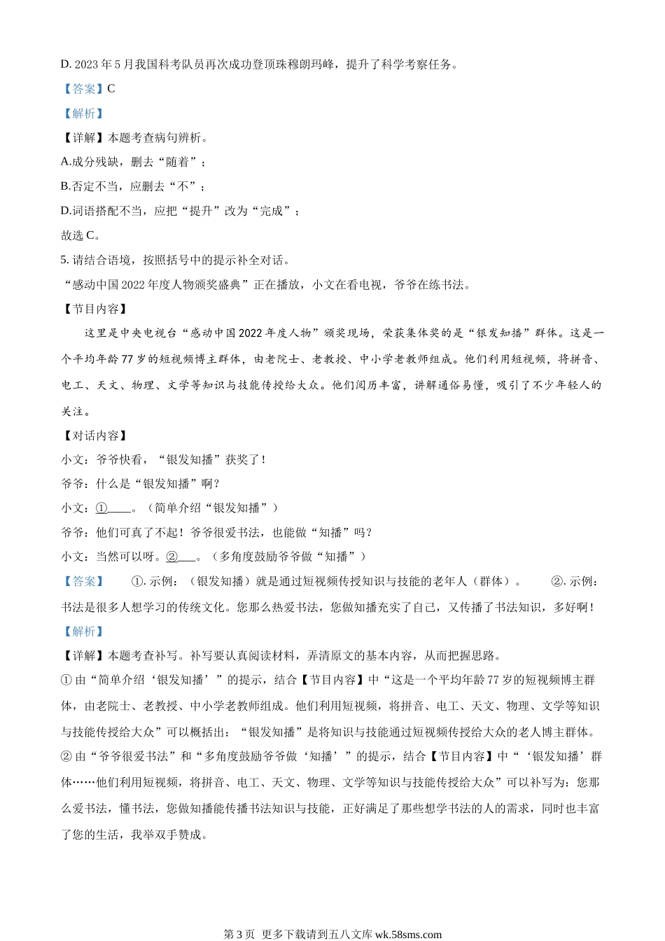 2023年广东省广州市中考语文真题(解析版).docx_第3页