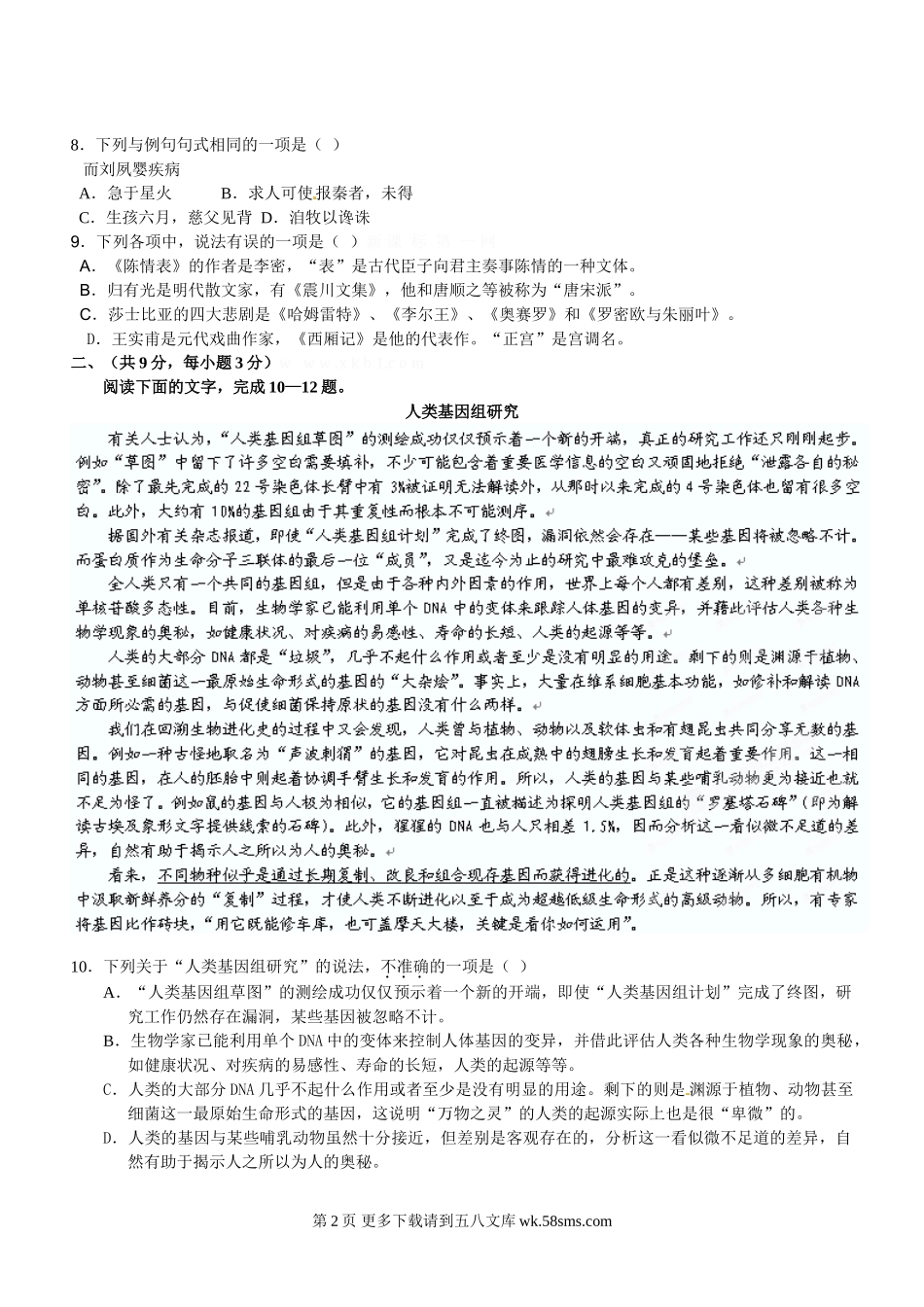 第Ⅰ卷(选择题共48分)一、(共18分,每小题3分)1.下列词语中加点的字,读音全部正确的一组是()A.浩瀚(hàn)红缯(zèng)乳媪(yùn)白泠泠(líng)B.笑靥(yàn)期功(qī)草蓐(rù)萋迷(qī...