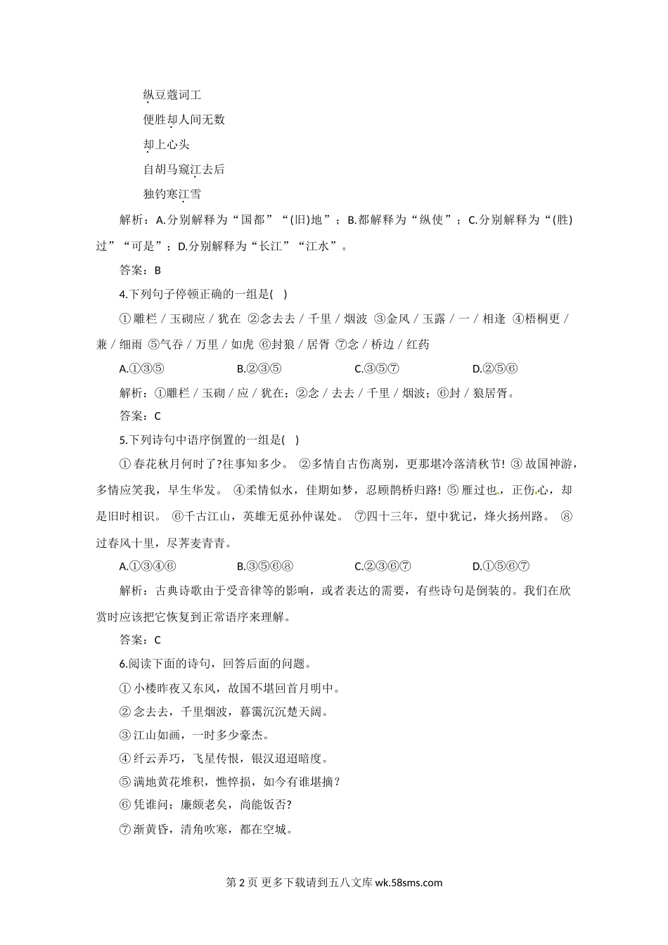 新人教版高二语文(必修五)单元能力检测:第二单元说明:本试卷分为第Ⅰ、Ⅱ卷两部分,请将第Ⅰ卷选择题的答案填入题后括号内,第Ⅱ卷可在各题后直接作答。共100分,考试时间90分钟。第Ⅰ卷(选择题共30分)一、(2...