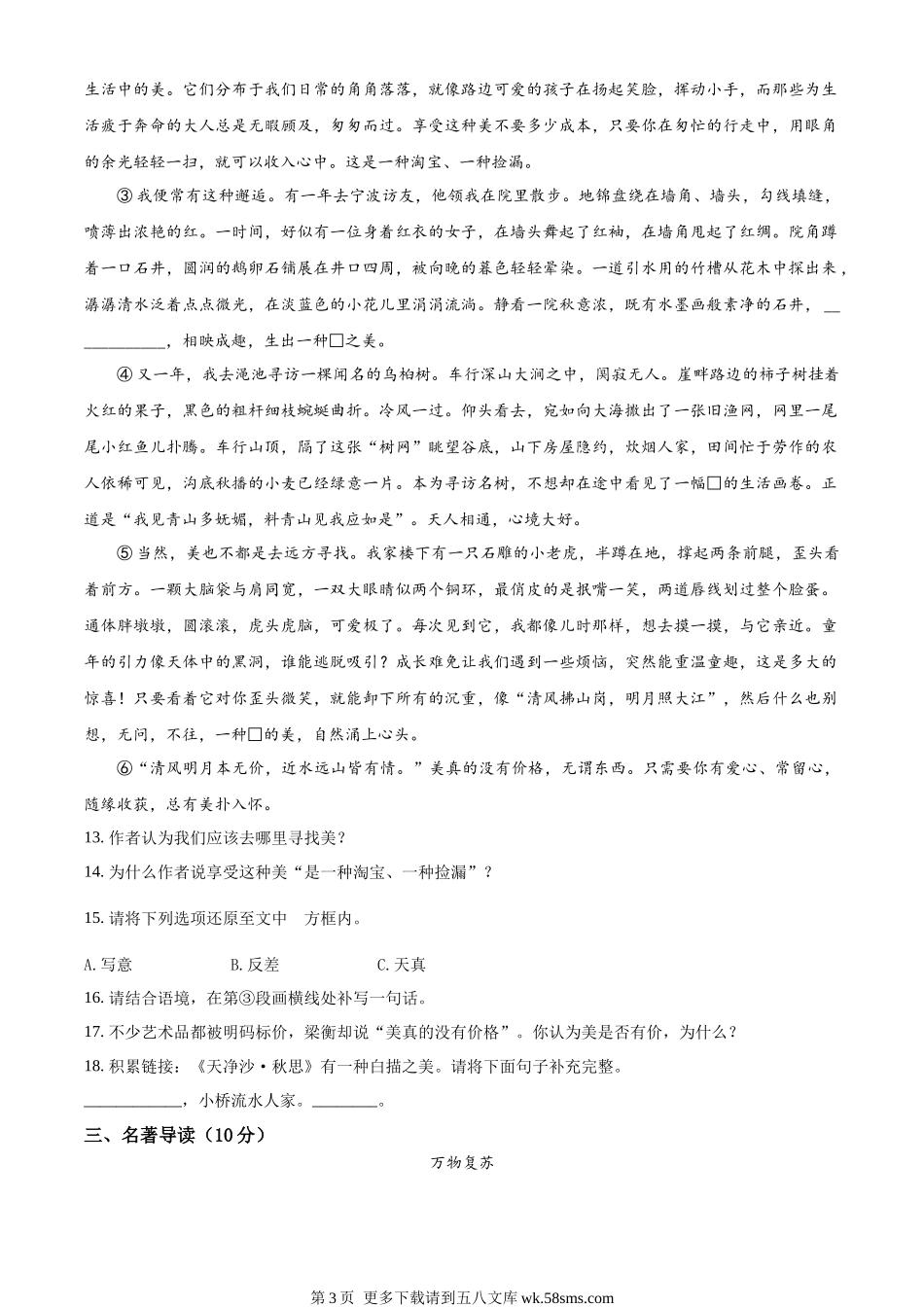 2023年湖北省宜昌市中考语文真题(原卷版).docx_第3页
