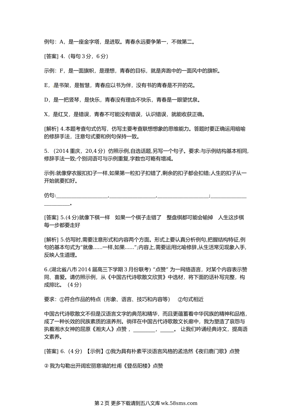 2015高考语文二轮复习题:常见的修辞手法(含2014高考题).doc_第2页