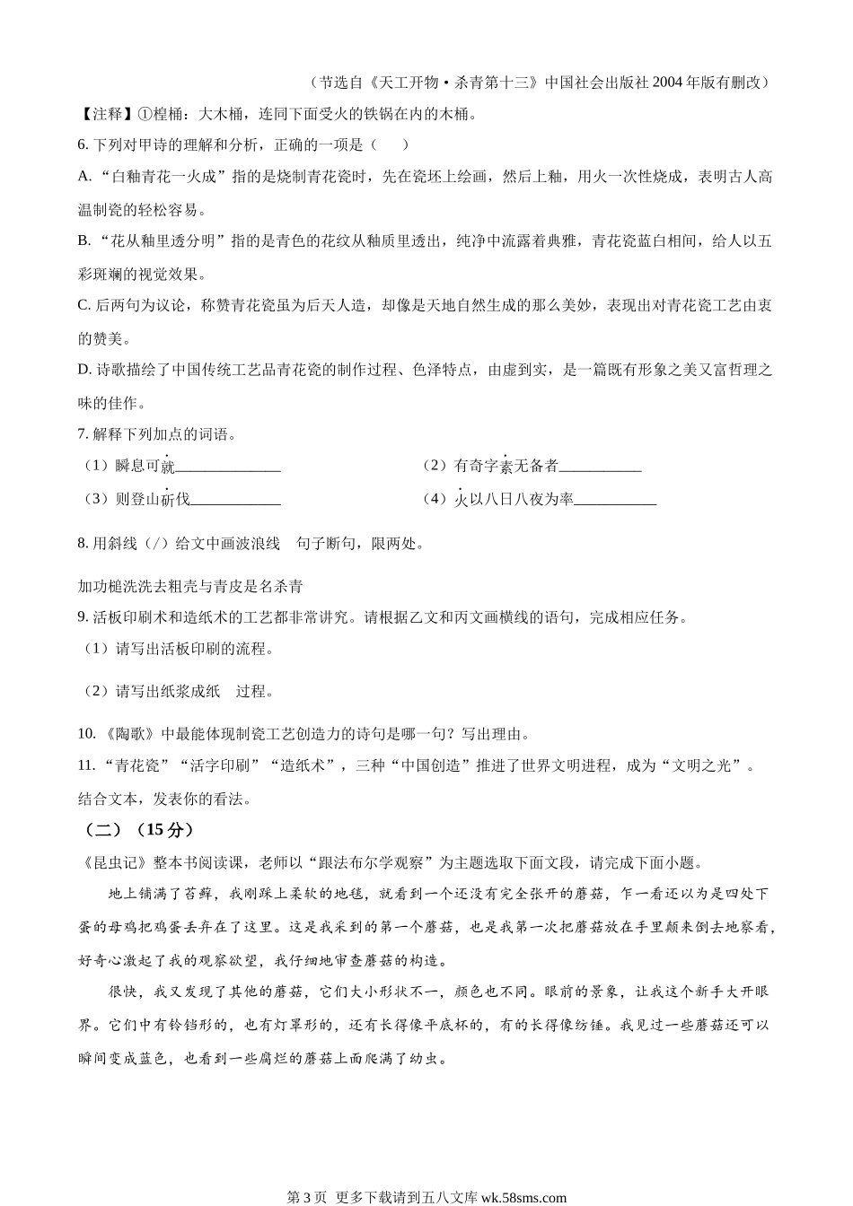 2023年江苏省连云港市中考语文真题(原卷版).docx_第3页