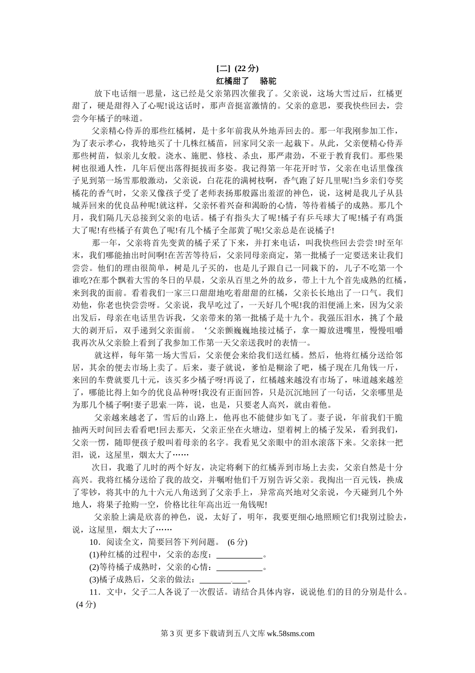 安徽省2012年中考语文试题有答案.doc_第3页