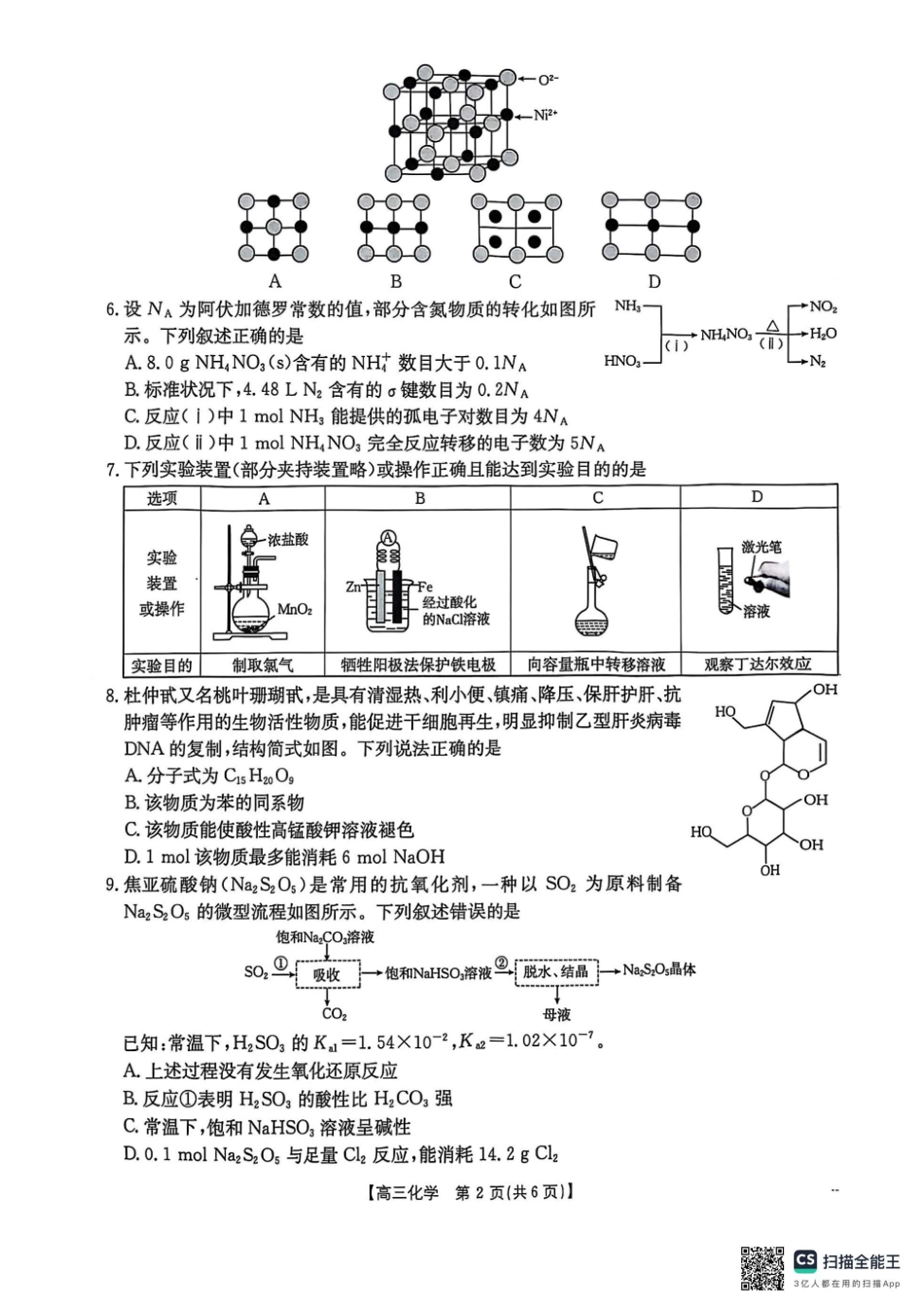 2025届贵州省安顺市高三下学期3月二模联考化学试题.pdf_第2页
