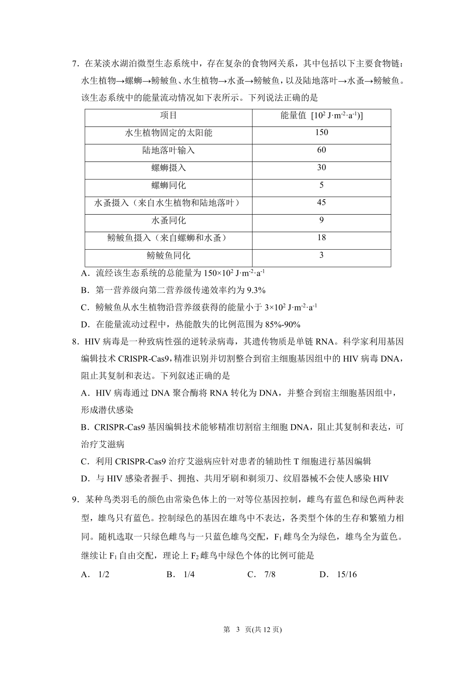 黑龙江省教育学会示范性高中专业委员会高三年级第一次模拟考试生物试题.pdf_第3页