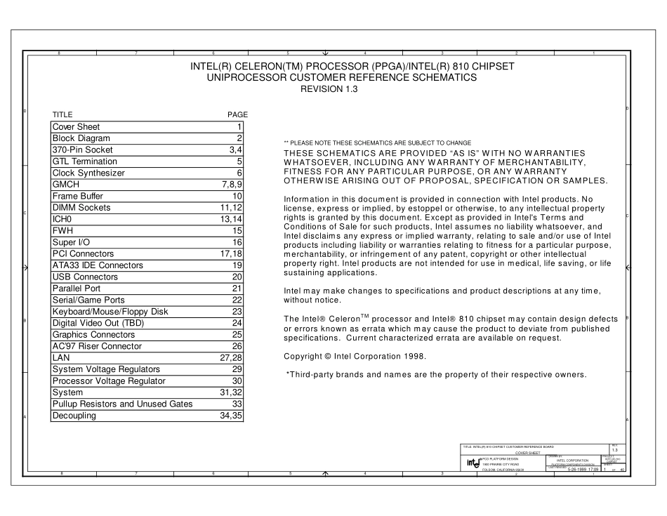 COVERSHEETTITLE5-26-1999_17:091**PLEASENOTETHESESCHEMATICSARESUBJECTTOCHANGEUNIPROCESSORCUSTOMERREFERENCESCHEMATICSPAGEREVISION1.3BCD87654321DCBA345678A21FOLSOM,CALIFORNIA95630DRAWNBY:1900PRAIRIECI...