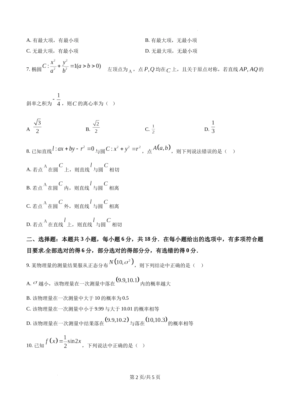 广东省深圳市高级中学高中园2025届高三下学期第一次模拟考试数学(原卷版).docx_第2页