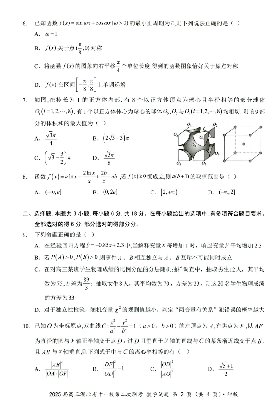 湖北省十一校2025届高三第二次联考数学试题.pdf_第2页