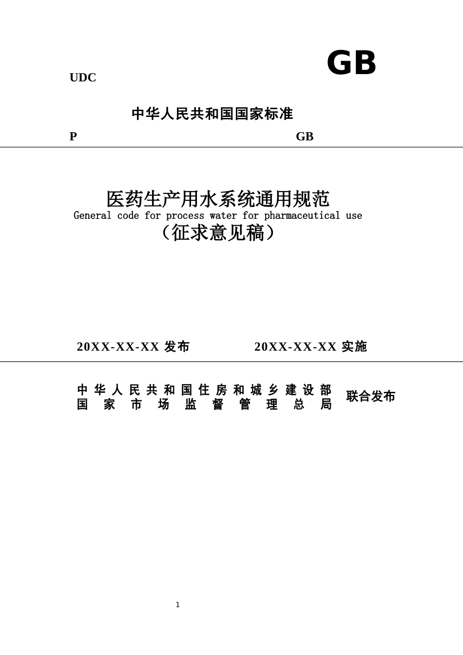 1GB中华人民共和国住房和城乡建设部国家市场监督管理总局UDCPGB20XX-XX-XX发布20XX-XX-XX实施联合发布中华人民共和国国家标准医药生产用水系统通用规范Generalcodeforprocesswaterforpharmaceuticaluse(征求意见...